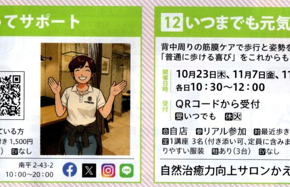 *女性の腰痛・冷え性ケア *背骨周りからの刺激を脳に伝え歩行改善 第13回こんにちは😊自然治癒力向上サロン「かえで」です。 ただいま「第13回 日野まちゼミ」受付中です!当サロンでは、皆さまの健康と笑顔をサポートするた… 続きを読む »🌸日野まちゼミ受付中!2講座開催🌸